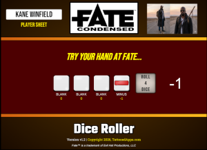 We are currently completing the last few features of version 1.2 of Fate Dice. This version will include Character Name, Character Image, Player Sheet, and some other minor features.